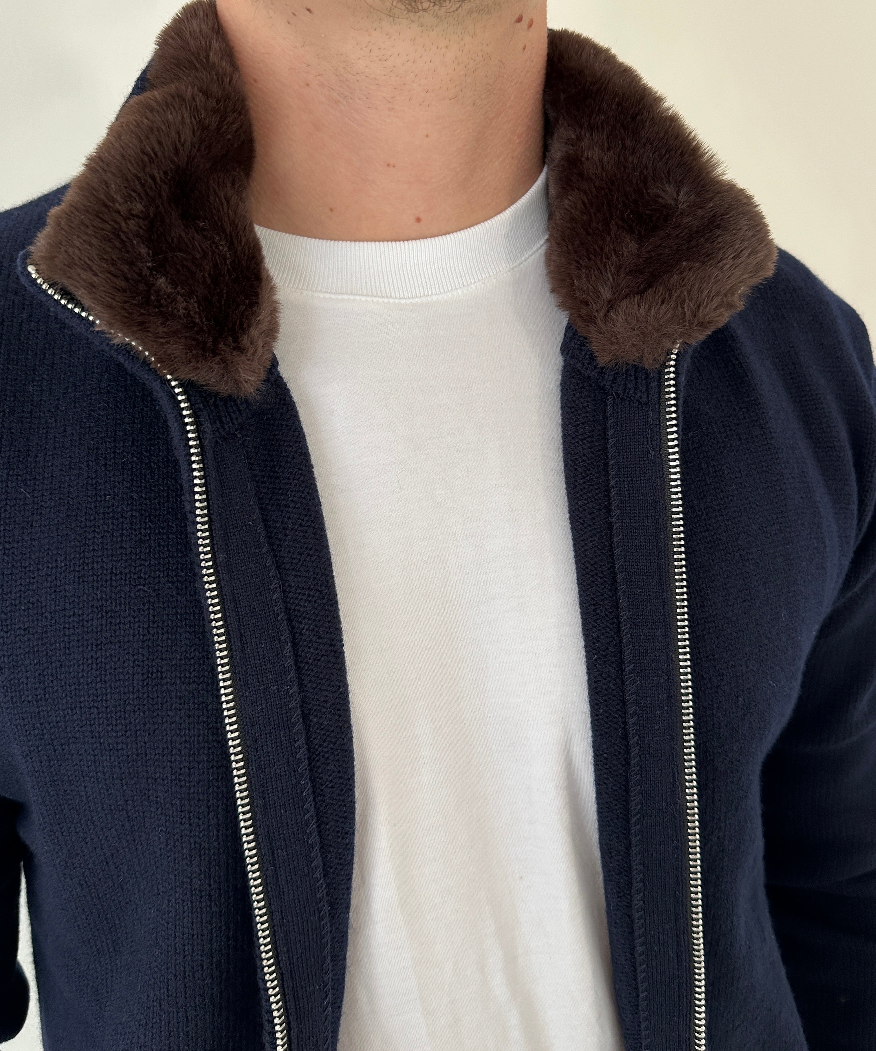 This blouson embodies refined minimalism and craftsmanship. Cut from pure merino wool, it offers exceptional softness and comfort. The subtle texture and fur collar add sophistication and warmth, while a smooth two-way zipper and ribbed hems complete an understated, versatile silhouette.